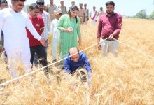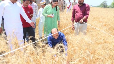 जिलाधिकारी ने किसानों के साथ की गेहूं की कटाई, उत्पादन का मूल्यांकन