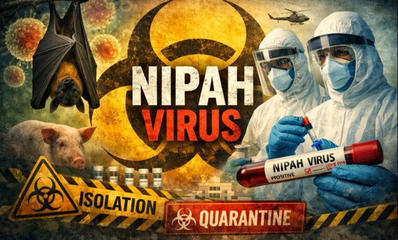 The live ink desk. पश्चिम बंगाल में निपाह वायरस (Nipah Virus) के संक्रमण ने स्वास्थ्य तंत्र को सतर्क कर दिया है। बारासात स्थित एक अस्पताल में कार्यरत दो नर्सें इस घातक वायरस की चपेट में हैं और उनकी स्थिति अब भी चिंताजनक बनी हुई है। दोनों का उपचार अस्पताल के आईसीयू आइसोलेशन वार्ड में चल रहा है, जहां विशेषज्ञ चिकित्सकों की टीम चौबीसों घंटे निगरानी कर रही है।