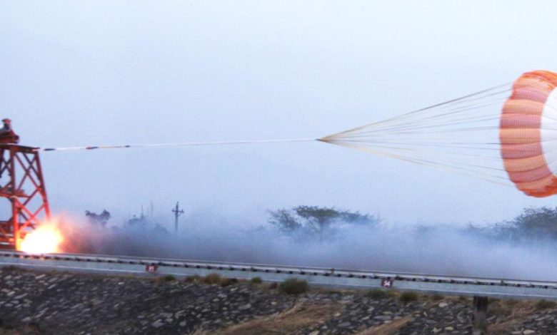 नई दिल्ली. भारत के मानव अंतरिक्ष कार्यक्रम के तहत विकसित गगनयान मिशन के लिए ड्रोग पैराशूट का क्वालिफिकेशन-लेवल लोड परीक्षण सफलतापूर्वक पूरा कर लिया गया है। यह परीक्षण निर्धारित अधिकतम उड़ान भार से अधिक लोड के साथ किया गया, ताकि प्रणाली की संरचनात्मक मजबूती, विश्वसनीयता और सुरक्षा मार्जिन का आकलन किया जा सके।